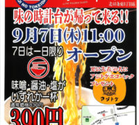 9/7(木)11:00~OPEN 味の時計台北48条東8丁目店 9/7(木) ...