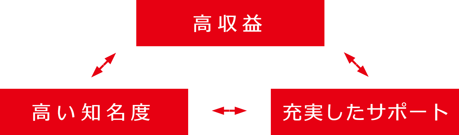 立地調査、事業計画づくり、研修、そしてオープン後にわたっても、本部が継続的なサポート体制でバックアップします。本部が指定する店舗で基礎教育から店舗マネジメントまで、十分なトレーニングを実施します。